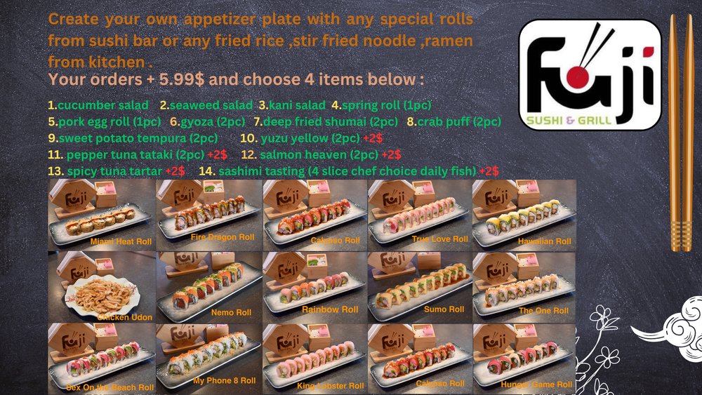 Reviews from delighted customers reflect FujiJAPAN's commitment to quality and service. From the exceptional sushi rolls, like the Tootsi Maki, to the inviting ambiance, every visit promises a memorable culinary journey. Whether you’re a sushi aficionado or a newcomer to Japanese cuisine, FujiJAPAN offers a fresh, flavorful experience that will have you returning for more!